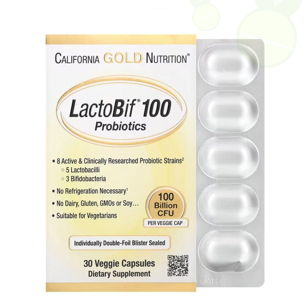 يحتوي مُنتج لاكتوبيف® 100 بروبيوتيك من كاليفورنيا جولد نيوتريشن على 8 سلالات بروبيوتيك نشطة: 5 سلالات من بكتيريا اللاكتوباسيلوس و3 سلالات من بكتيريا البيفيدوباكتيريا. تحتوي كل كبسولة نباتية على 100 مليار وحدة تشكيل مستعمرة لتزويد الجسم بكمية فعالة من البكتيريا النافعة.